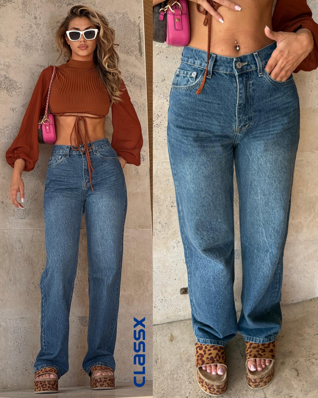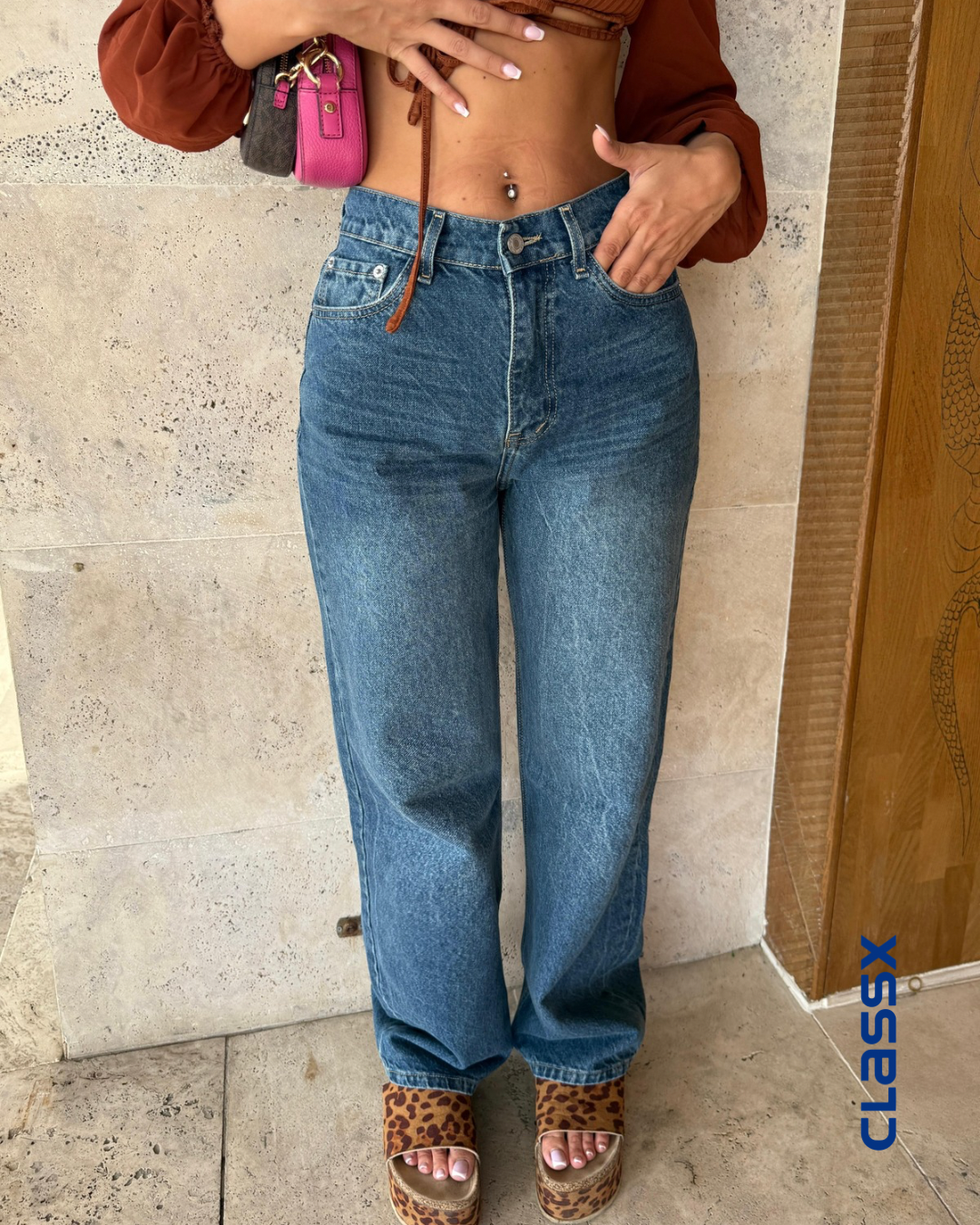 Farmerke od pamuka sa visokim strukom i ravnim nogavicama. Klasičan model sa pet džepova i kopčanjem na...