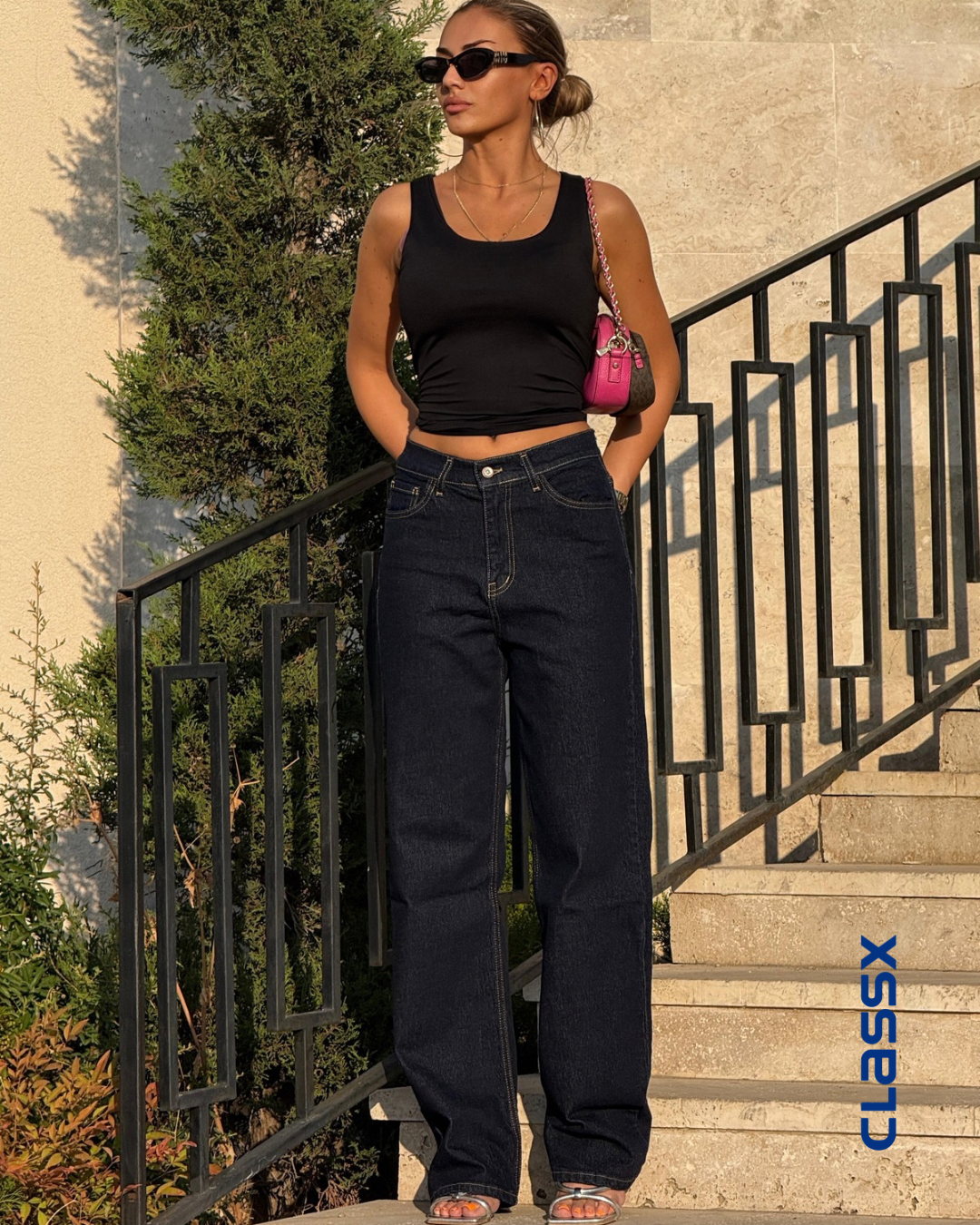 Farmerke od pamuka sa visokim strukom i ravnim nogavicama. Klasičan model sa pet džepova i kopčanjem na...