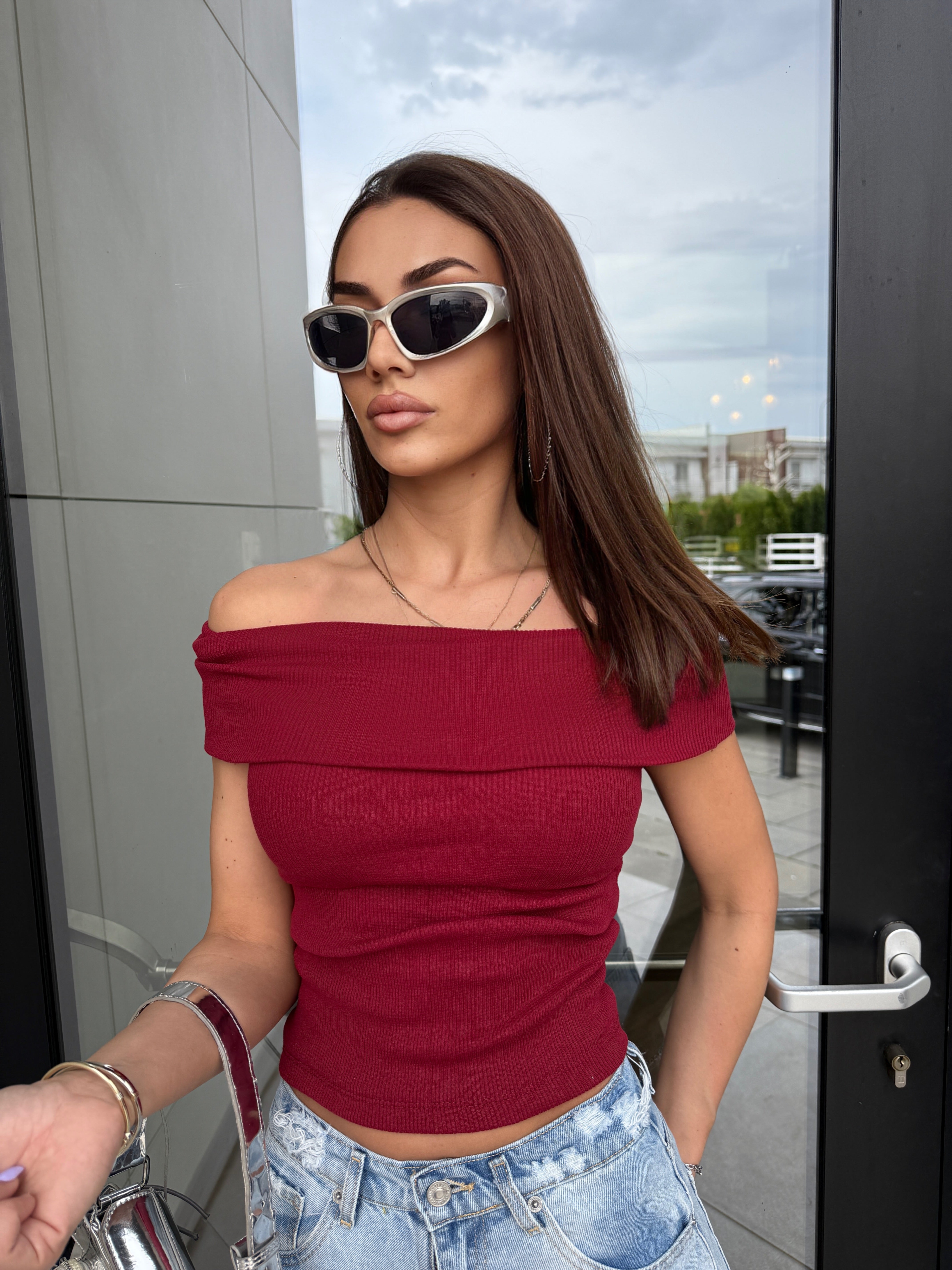 Istakni svoju ženstvenost uz ovu prefinjenu bordo majicu sa spuštenim ramenima. Izrađena od mekanog, rebrastog materijala koji...