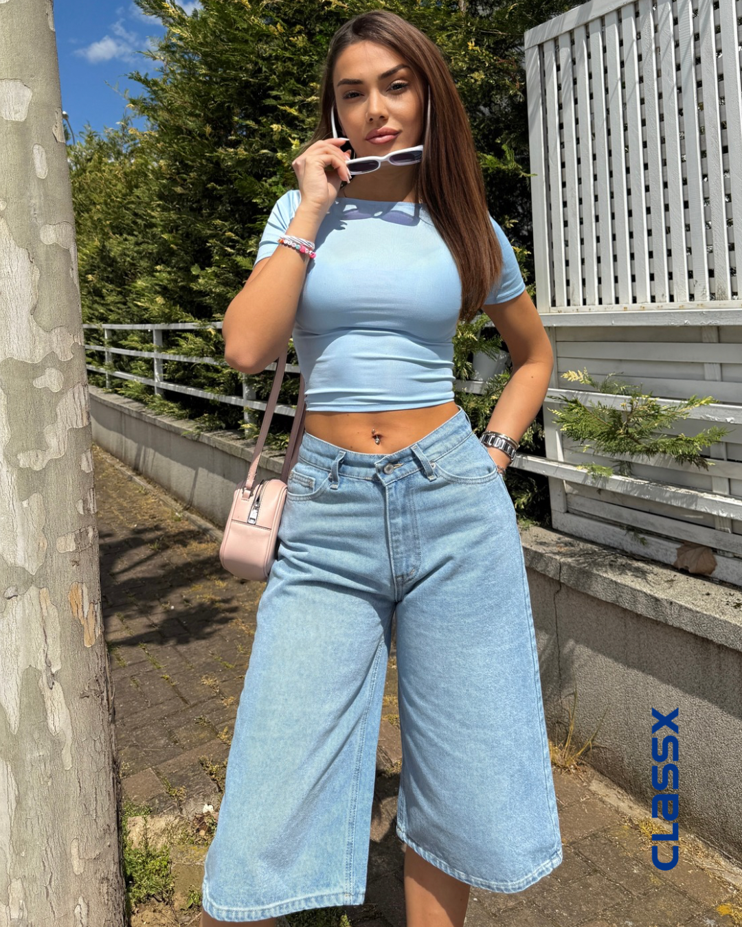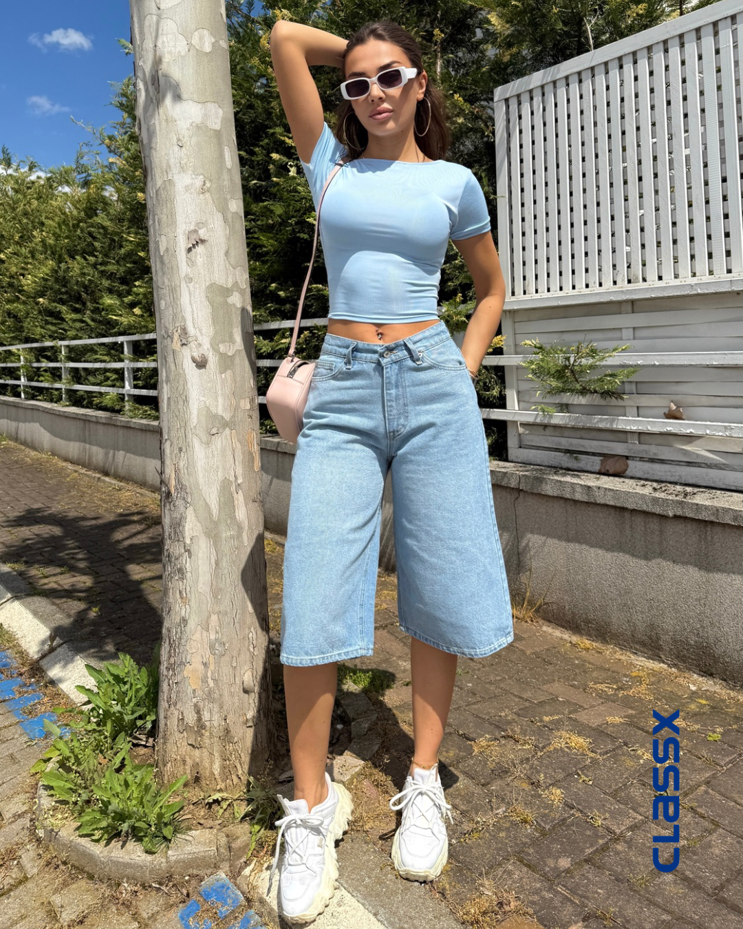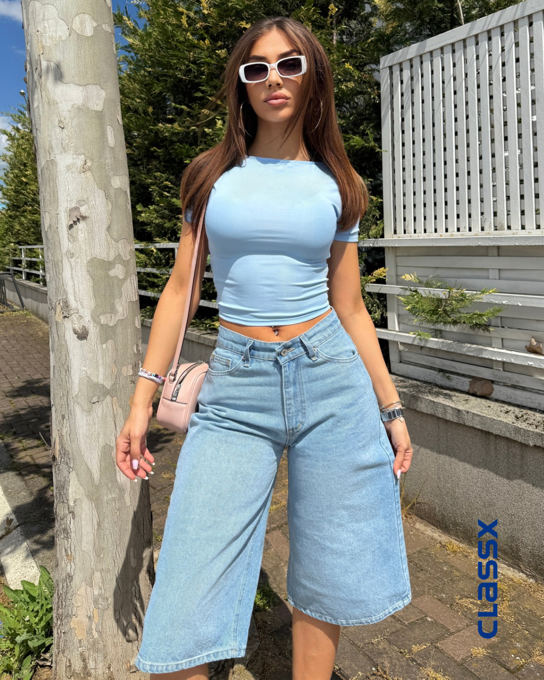 Teksas šorts visokog struka idealan je izbor za urbane, moderne kombinacije tokom toplih dana. Izrađen od kvalitetnog...