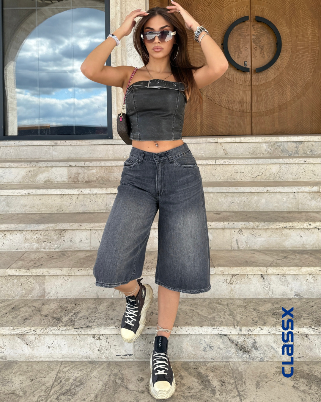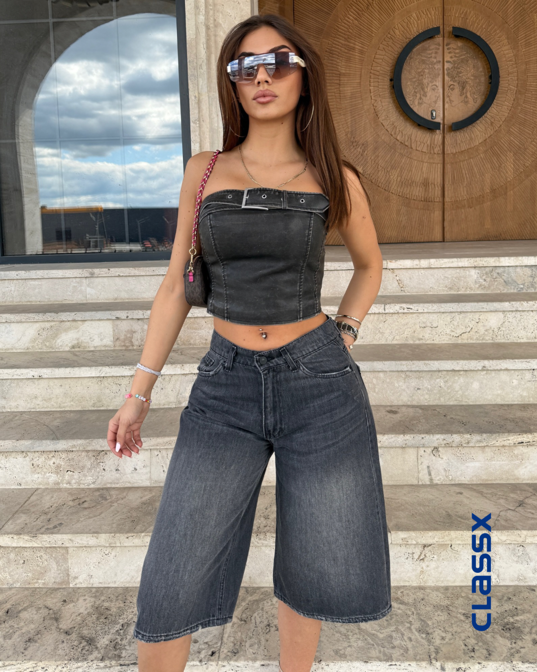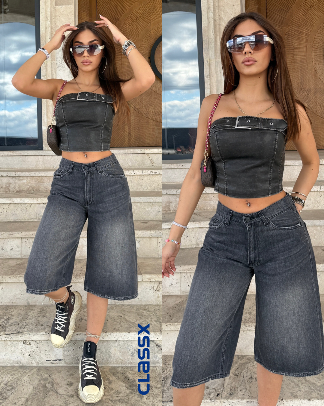 Teksas šorts visokog struka idealan je izbor za urbane, moderne kombinacije tokom toplih dana. Izrađen od kvalitetnog...