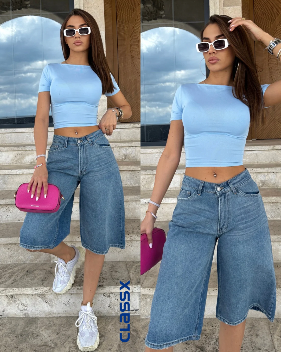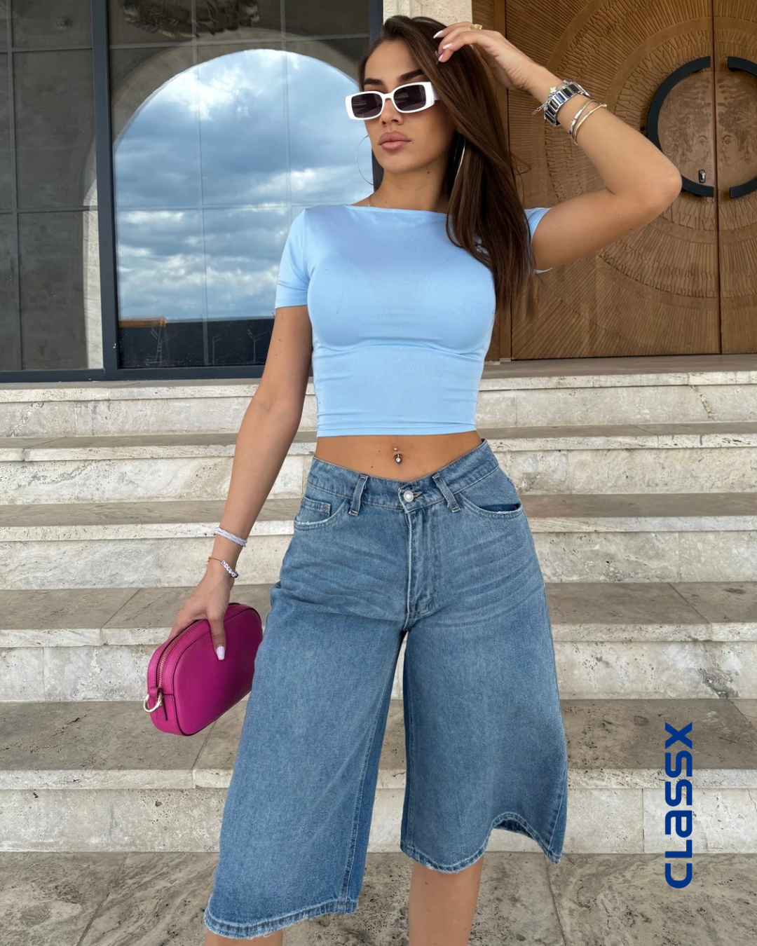 Teksas šorts visokog struka idealan je izbor za urbane, moderne kombinacije tokom toplih dana. Izrađen od kvalitetnog...