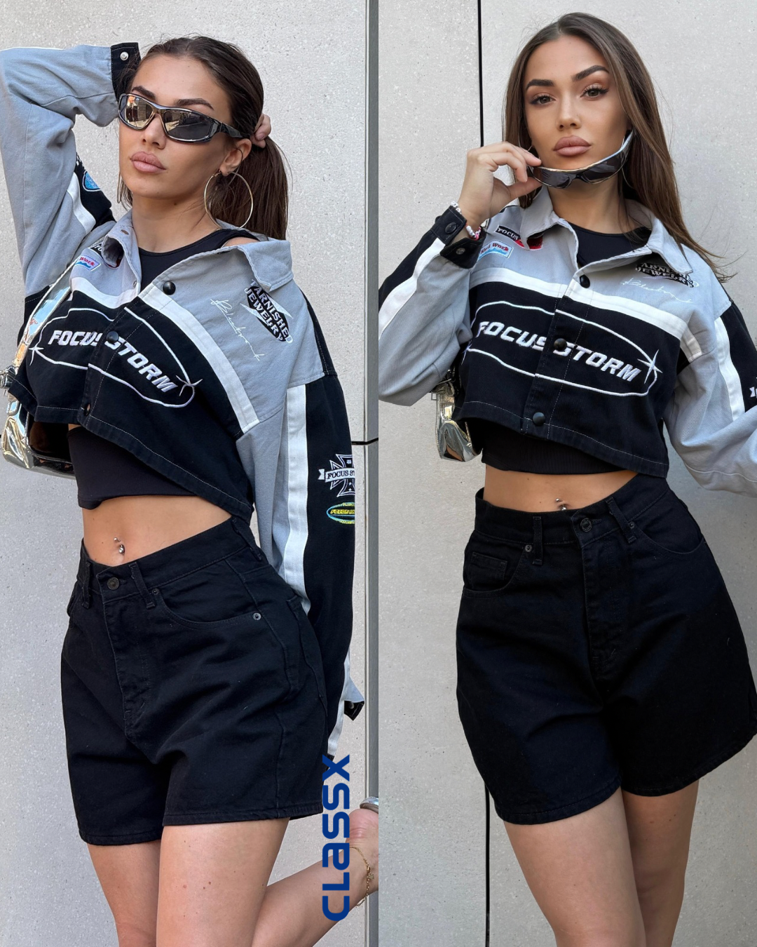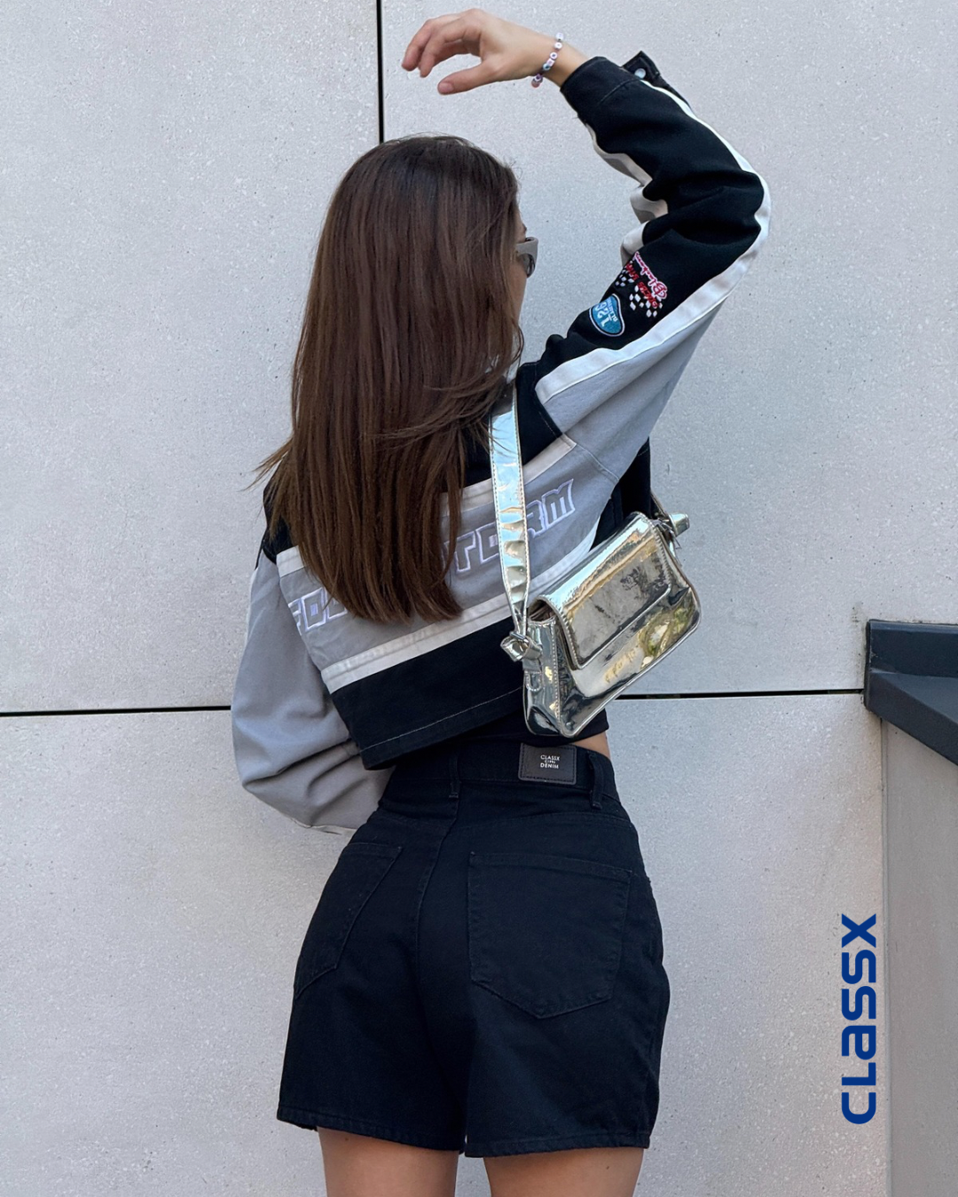 Crni denim šorts ravnog kroja sa izbeljenim ivicama je komad koji podiže svaki street style look. Sa visokim strukom, udobnim nogavicama i bezvremenskim dizajnom, ovaj šorts je tvoj saveznik u svim urbanim kombinacijama. Nosiv uz štikle, patike ili sandale – prilagođava se tvom ritmu i stilu.