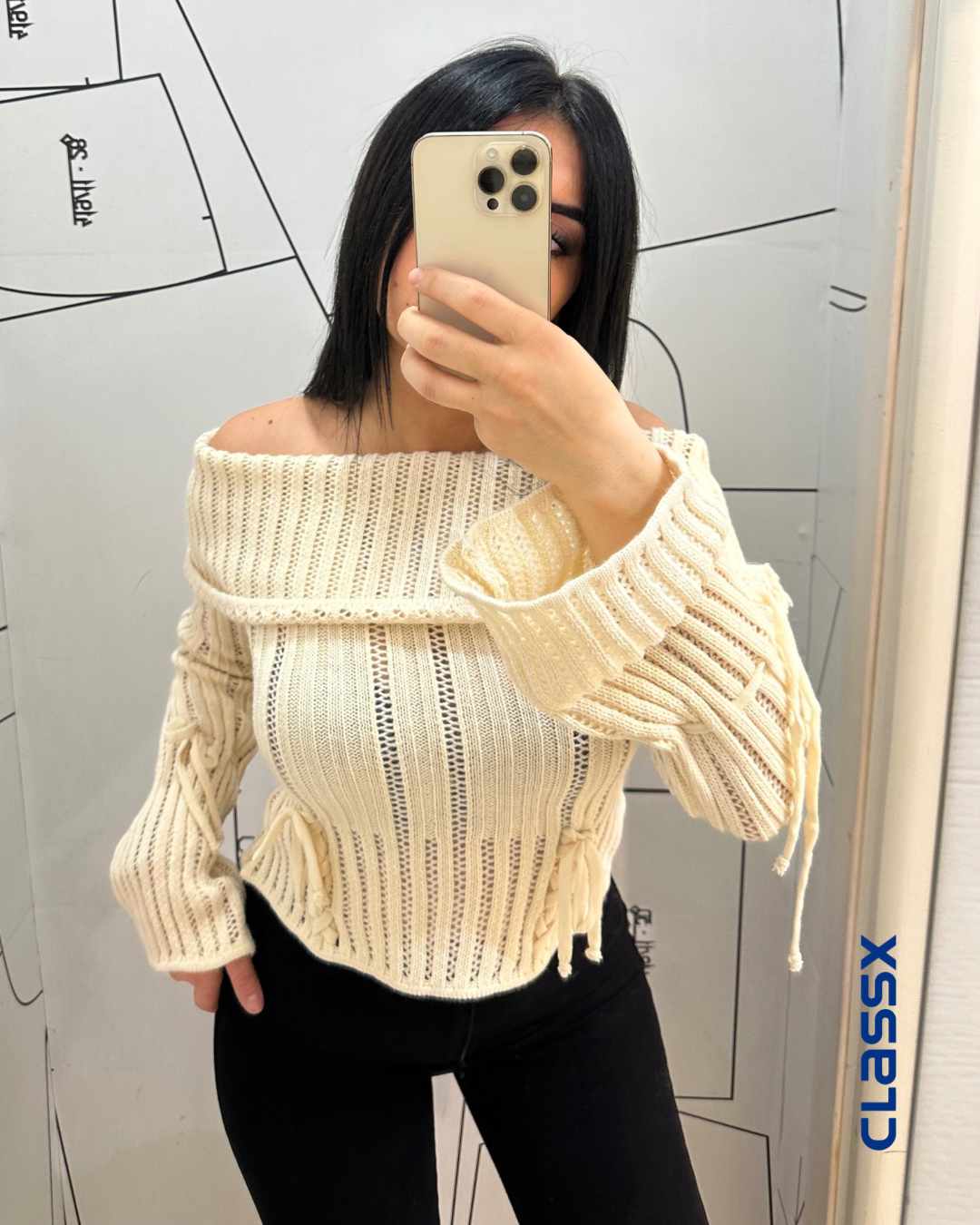 Džemper sa otkrivenim ramenima Bež