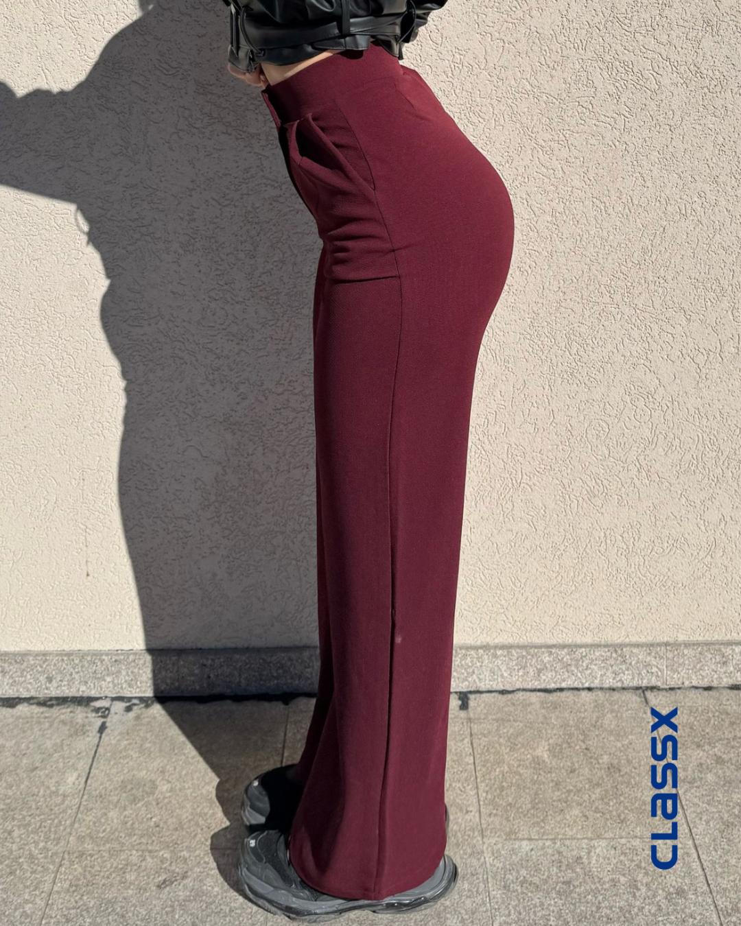 Unesi dozu sofisticiranosti u svakodnevni stil uz naše elegantne bordo pantalone visokog struka. Sa suptilnim faltama napred...