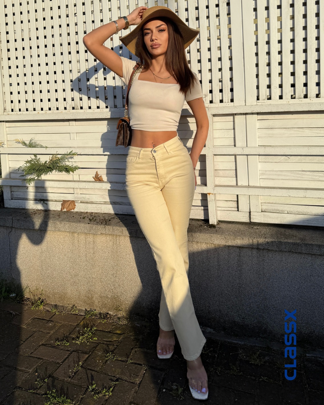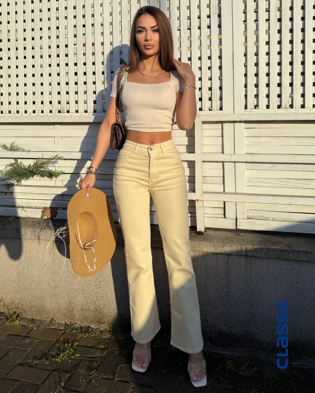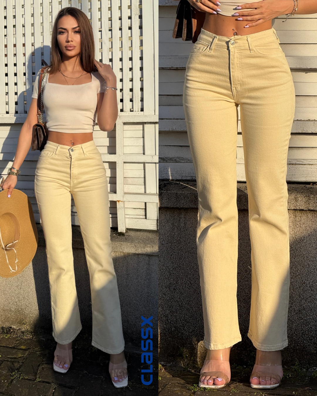 Farmerke dubokog struka sa zvonastim delom nogavice koji se sužava ka kolenu i potom se ponovo širi. Klasičan...