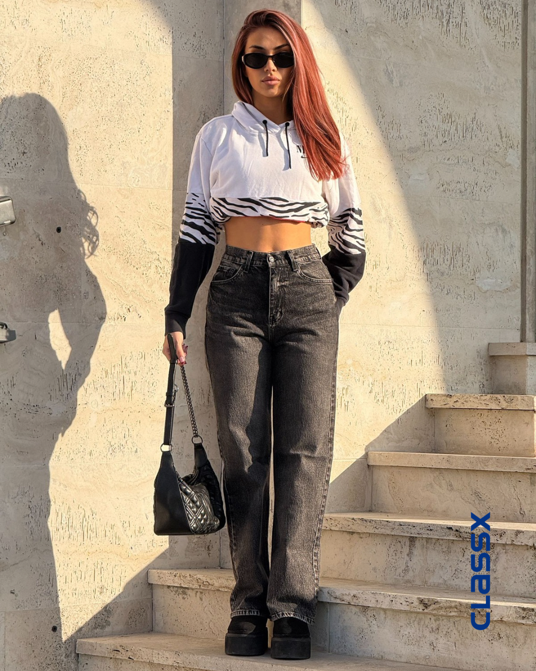 Farmerke od pamuka sa visokim strukom i ravnim nogavicama. Klasičan model sa pet džepova i kopčanjem na...