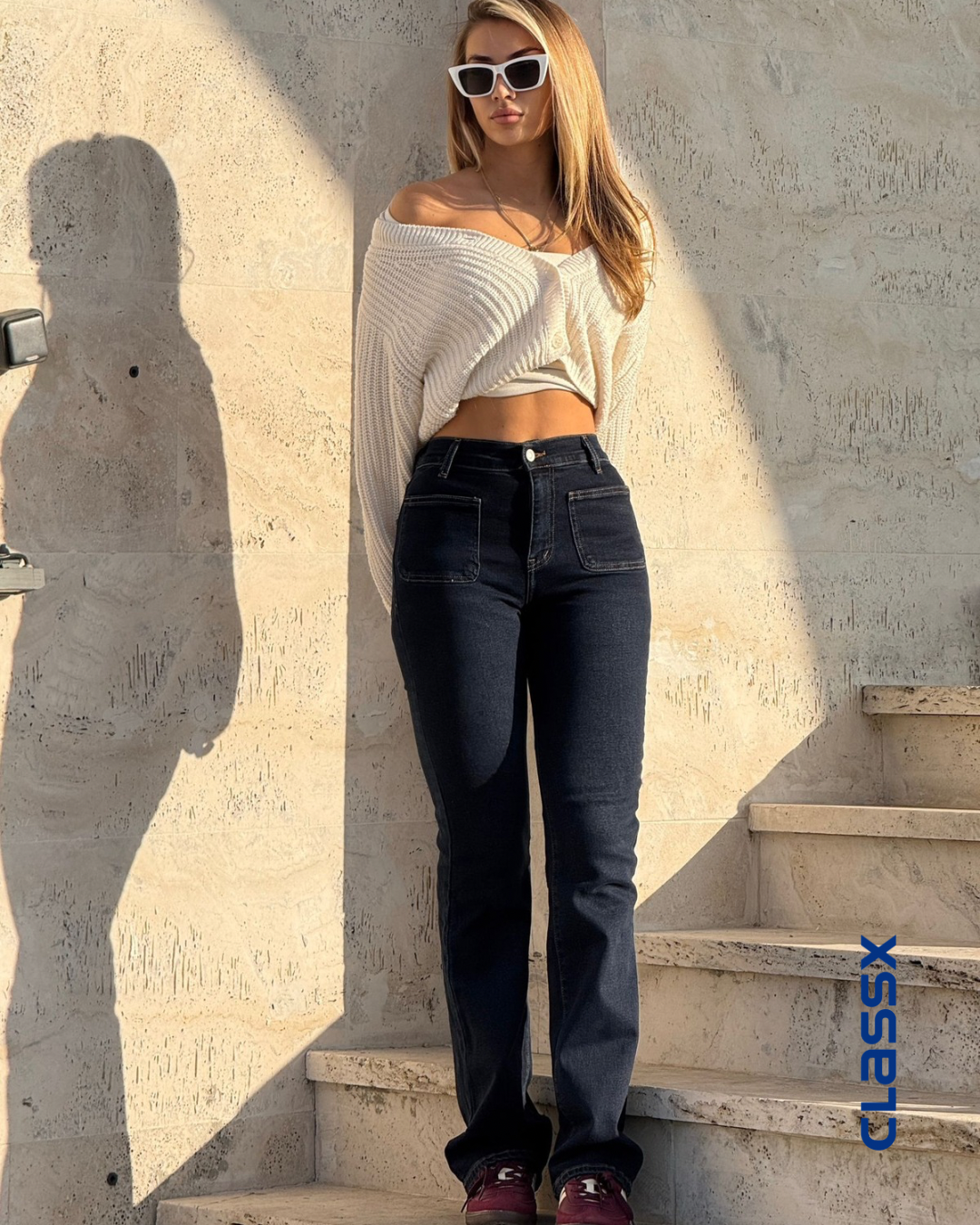 Klasične zvonarice sa visokim strukom i prednjim džepovima 538/1