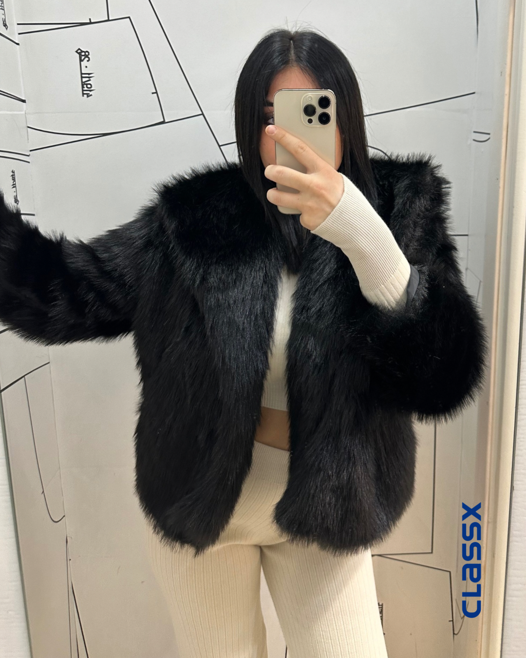 Elegantna kratka bunda u crnoj boji, savršena za zimske dane. Njena meka i luksuzna tekstura čini je idealnim izborom za svečane prilike, ali i za casual kombinacije. Udobna, moderna i nepogrešiv dodatak vašem garderoberu.