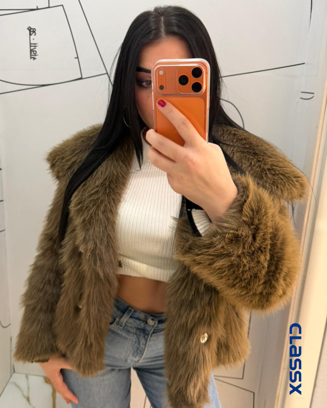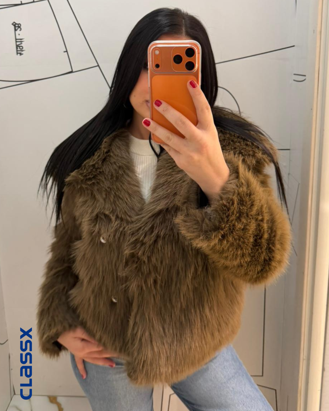Bundica koja donosi kombinaciju topline, mekoće i modernog kroja. Maslinasto-braon nijansa lako se uklapa uz dnevne i večernje outfite, dok kratka silueta naglašava struk i daje chic efekat. Idealna je za trendi devojke koje žele luksuzan izgled bez kompromisa u udobnosti.