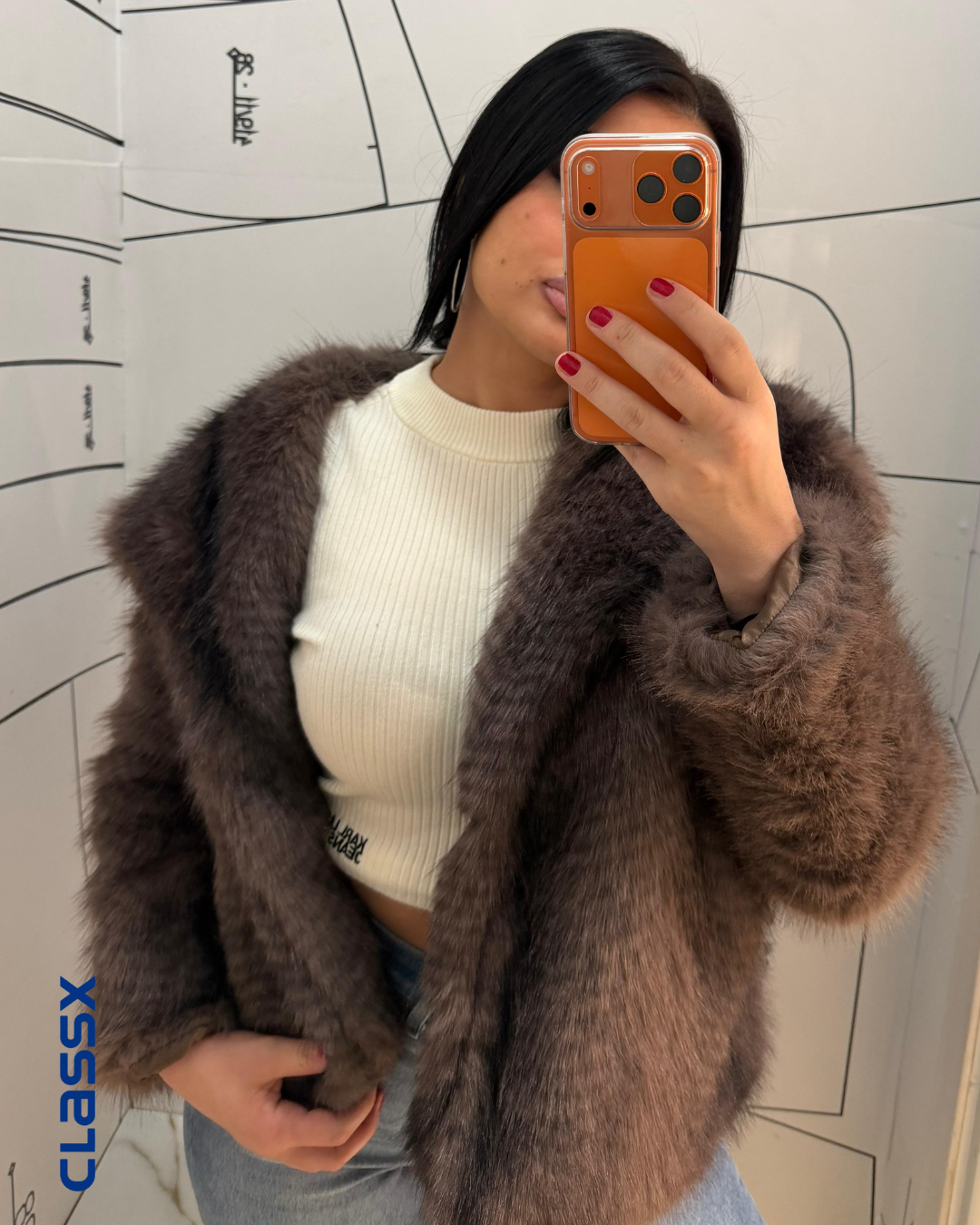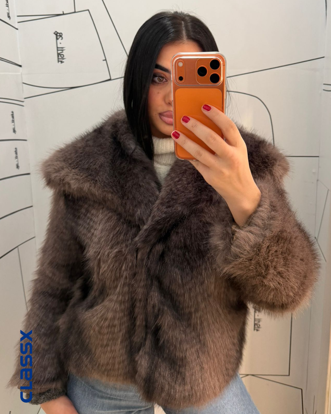 Ova bundica u braon tonu pravi je magnet za poglede. Kombinuje bogatu boju, mekanu teksturu i moderan dizajn koji podiže svaki outfit. Bilo da je nosiš uz farmerke ili haljinu, izgledaćeš glamurozno i moderno.