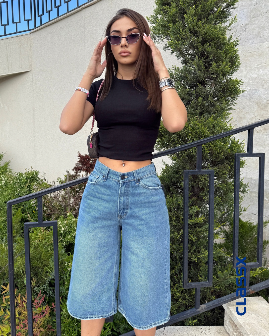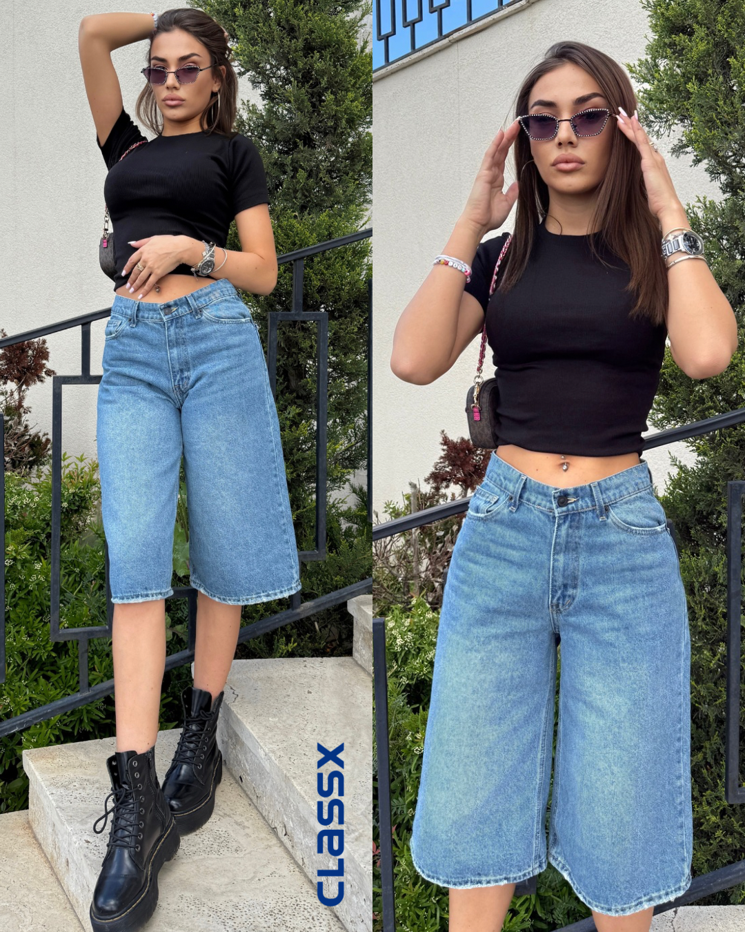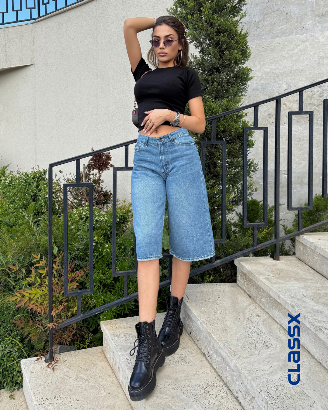 Teksas šorts visokog struka idealan je izbor za urbane, moderne kombinacije tokom toplih dana. Izrađen od kvalitetnog...